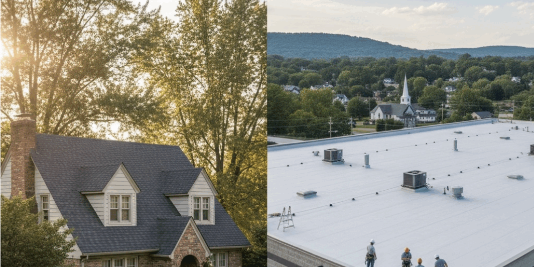 When you’re managing property in Chester County or anywhere across Pennsylvania, understanding the critical differences between residential and commercial roofing isn’t just helpful: it’s essential for making smart investment decisions! Whether you’re a homeowner planning a roof replacement or a business owner evaluating your commercial property needs, these distinctions will directly impact your budget, timeline, and long-term maintenance strategy.